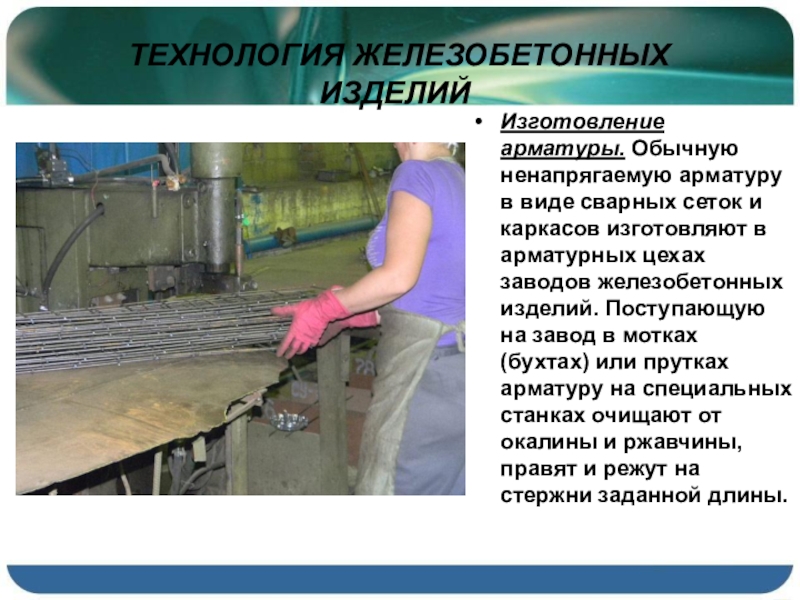 Слайд 10 ТЕХНОЛОГИЯ ЖЕЛЕЗОБЕТОННЫХ ИЗДЕЛИЙ