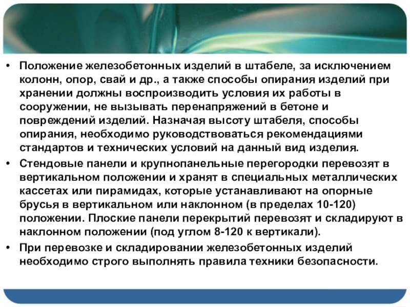 При перевозке и складировании железобетонных изделий необходимо строго выполнять правила техники безопасности.