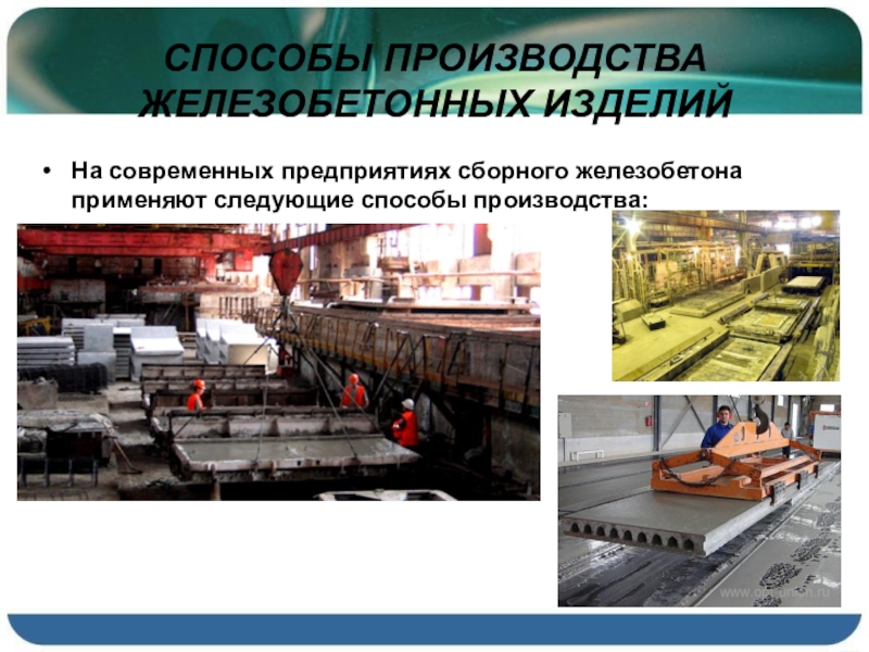 Слайд 25СПОСОБЫ ПРОИЗВОДСТВА ЖЕЛЕЗОБЕТОННЫХ ИЗДЕЛИЙ