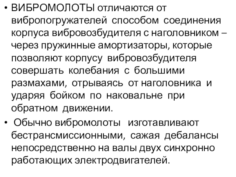 Слайд 26ВИБРОМОЛОТЫ отличаются от вибропогружателей способом соединения корпуса вибровозбудителя с наголовником –