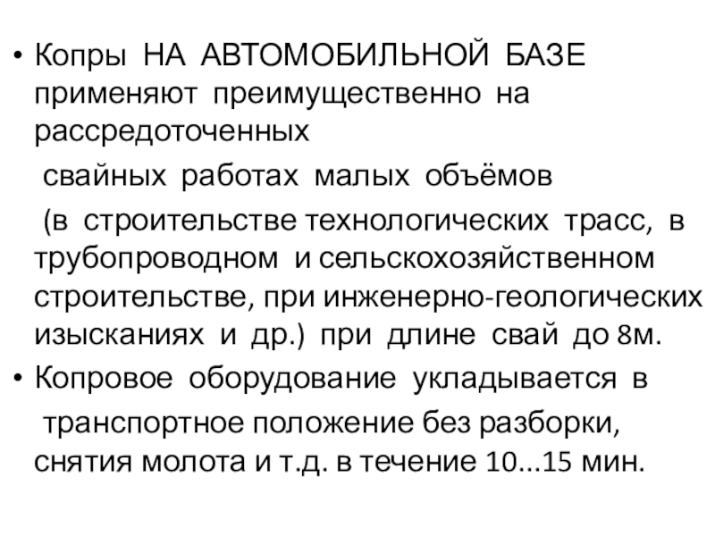 Слайд 12Копры НА АВТОМОБИЛЬНОЙ БАЗЕ применяют преимущественно на рассредоточенных