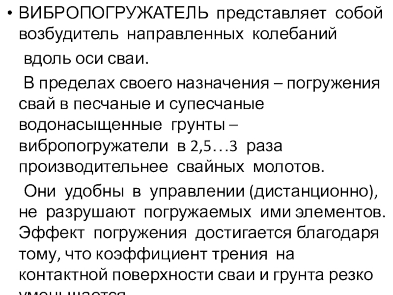 Слайд 24ВИБРОПОГРУЖАТЕЛЬ представляет собой возбудитель направленных колебаний
