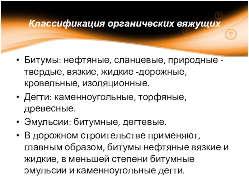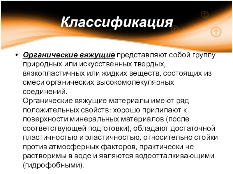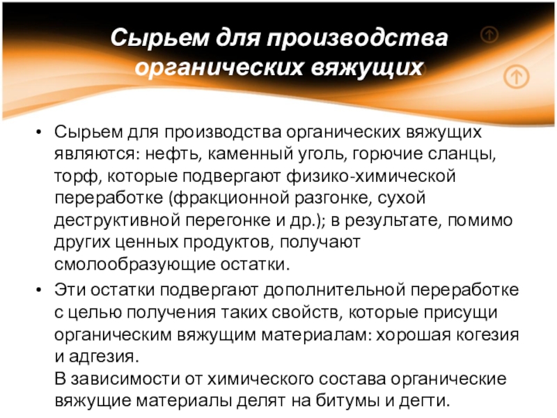 Органические вяжущие представляют собой группу природных или искусственных твердых, вязкопластичных или жидких