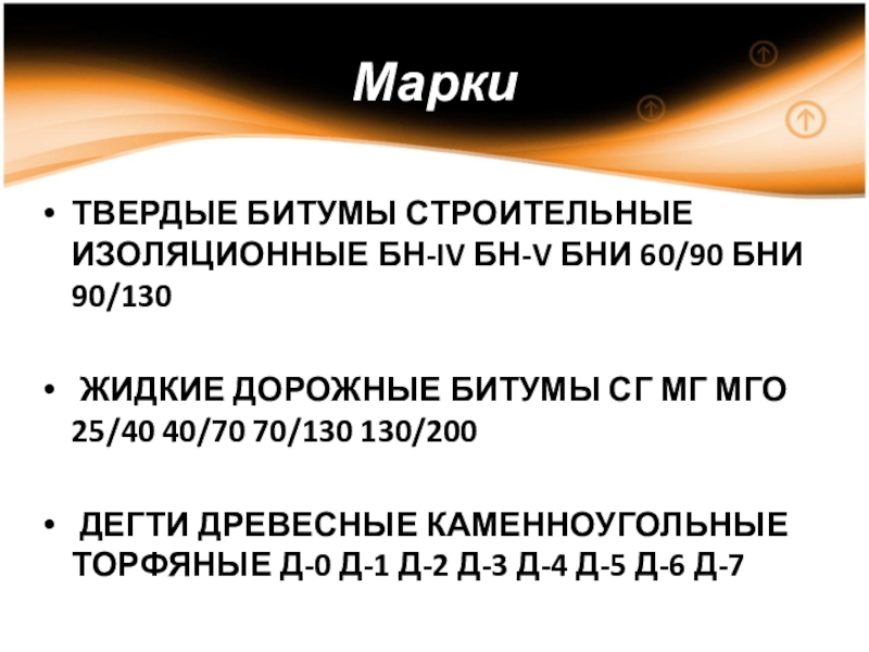 Битумы: нефтяные, сланцевые, природные -твердые, вязкие, жидкие -дорожные, кровельные,