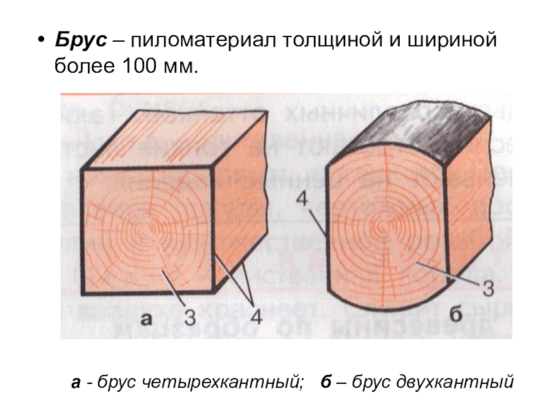 Слайд 12Брус – пиломатериал толщиной и шириной более 100 мм.