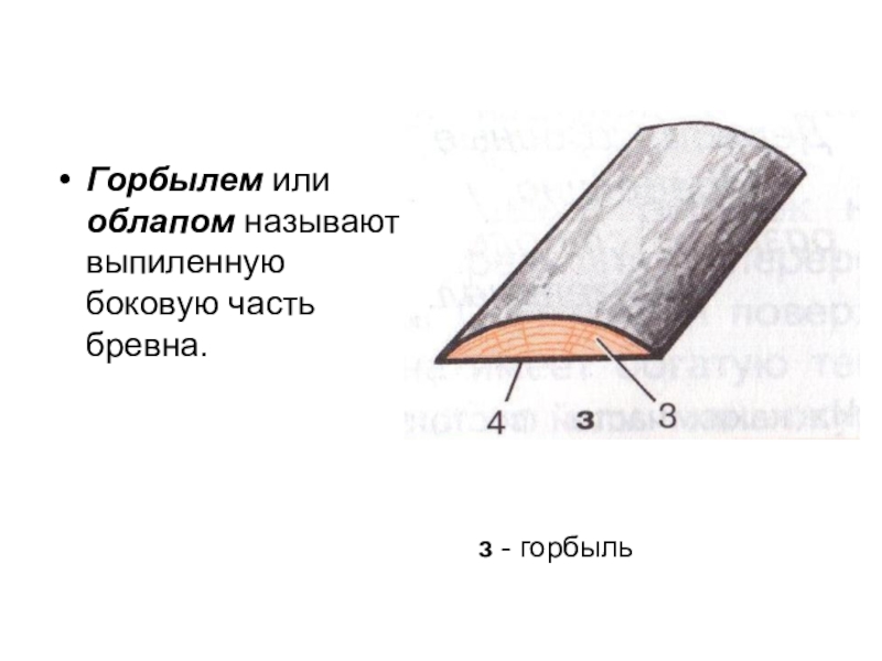 Слайд 16Горбылем или облапом называют выпиленную боковую часть бревна.