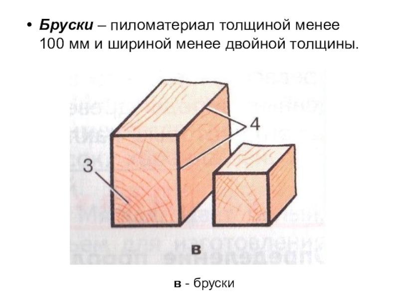 Слайд 13Бруски – пиломатериал толщиной менее 100 мм