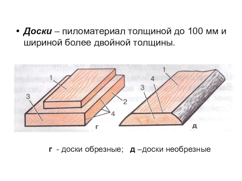 Слайд 14Доски – пиломатериал толщиной до 100 мм и шириной более двойной