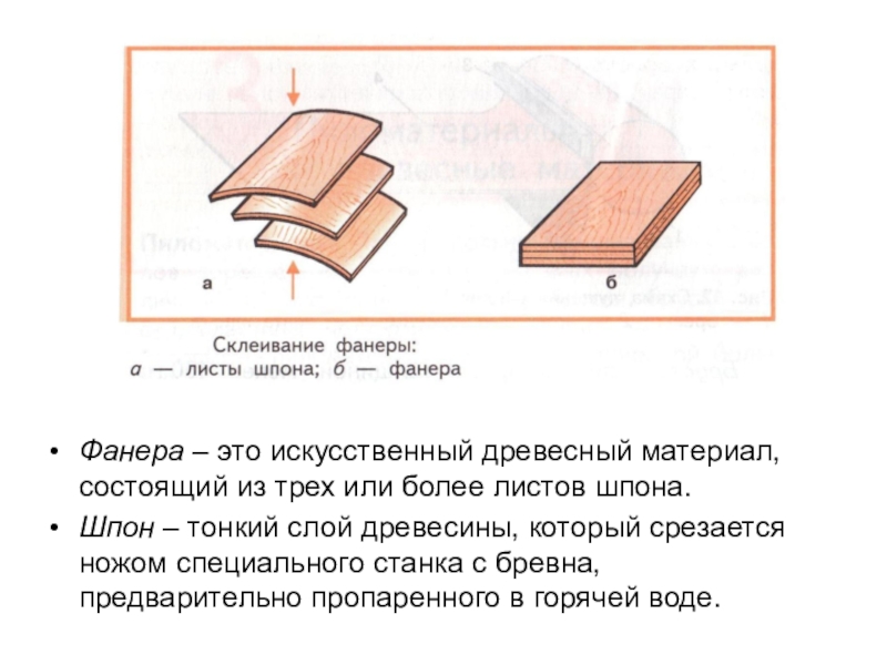 Слайд 19Фанера – это искусственный древесный материал, состоящий из трех или более