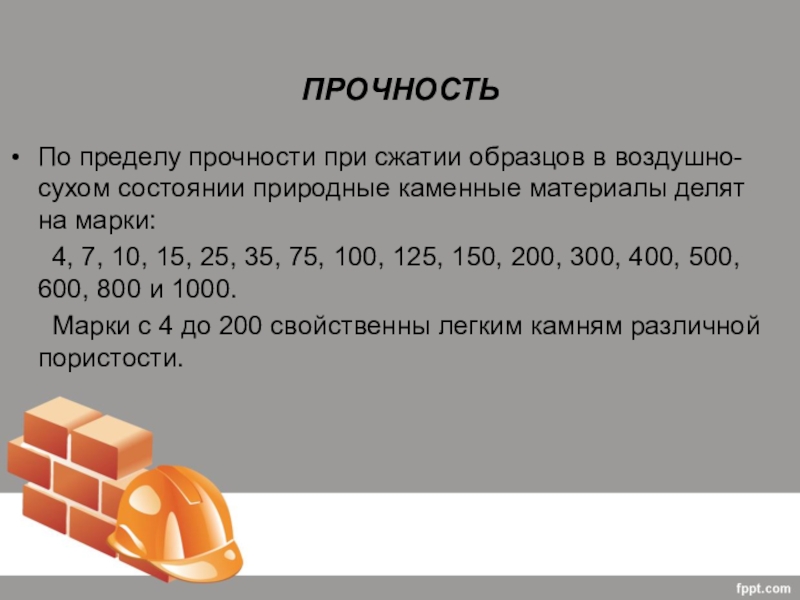 Марки с 4 до 200 свойственны легким камням различной пористости.