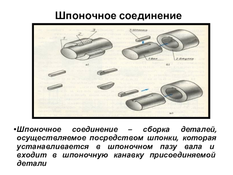 Шпоночное соединение – сборка деталей, осуществляемое посредством шпонки, которая устанавливается