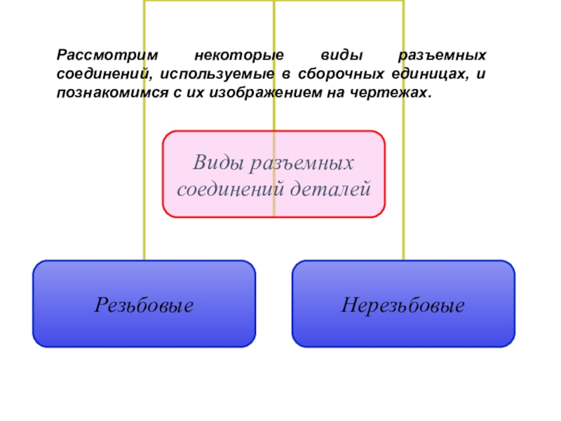 Слайд 2Рассмотрим некоторые виды разъемных соединений, используемые в сборочных единицах, и познакомимся