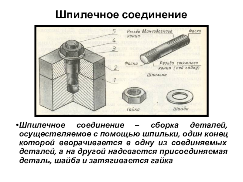 Шпилечное соединение – сборка деталей, осуществляемое с помощью шпильки, один