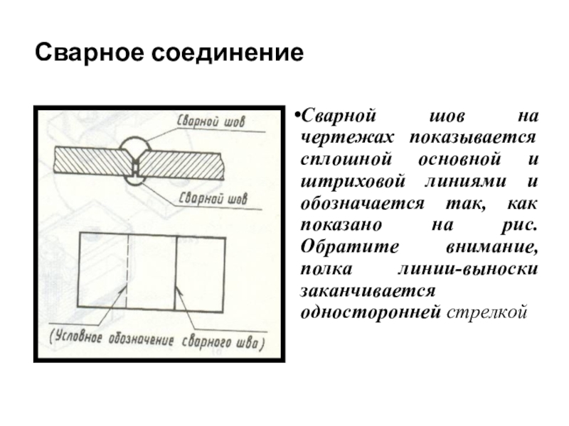 Сварной шов на чертежах показывается сплошной основной и штриховой линиями