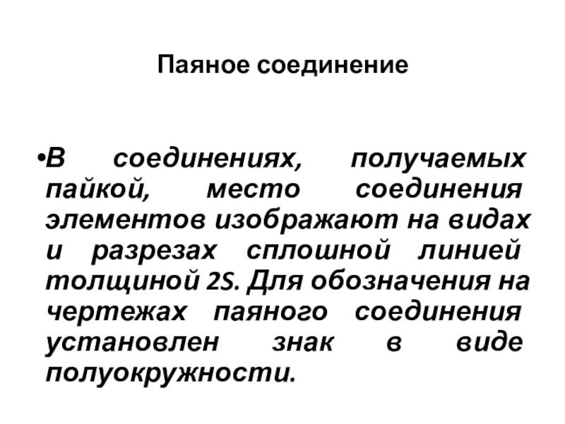 и разрезах сплошной линией толщиной 2S. Для обозначения на чертежах паяного соединения установлен знак в виде полуокружности.