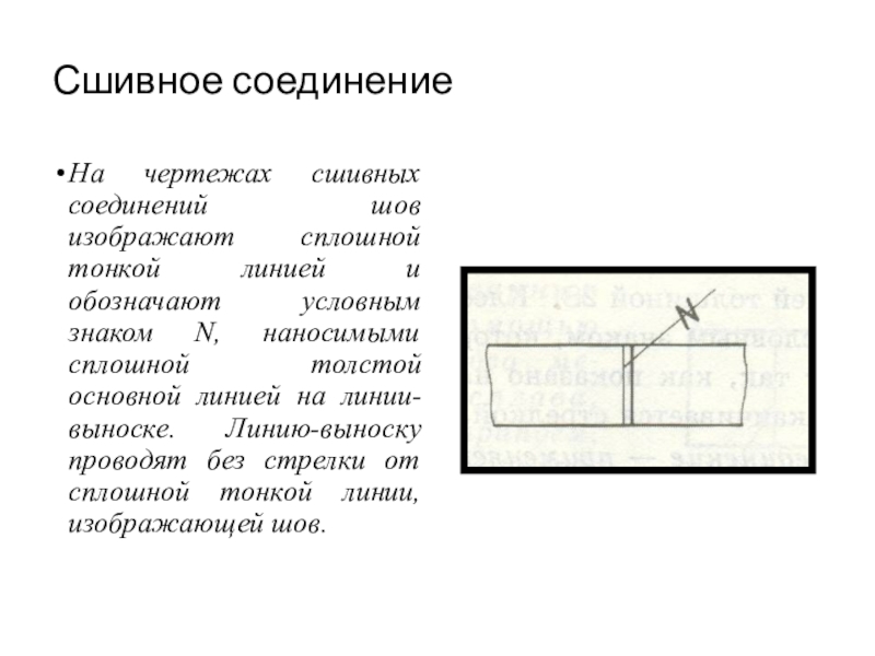 На чертежах сшивных соединений шов изображают сплошной тонкой линией и