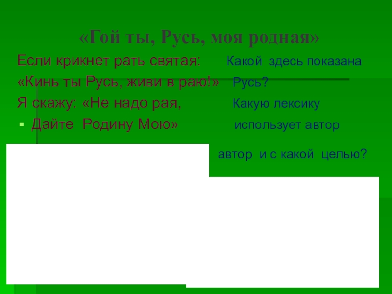 «Гой ты, Русь, моя родная»Если крикнет рать святая:   Какой здесь показана «Кинь ты Русь, живи