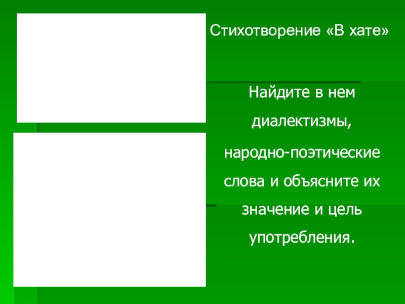 Стихотворение «В хате»Найдите в нем диалектизмы, народно-поэтические слова и объясните их значение и цель употребления.