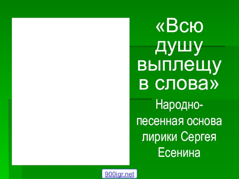 «Всю душу выплещу в слова»Народно-песенная основа лирики Сергея Есенина 900igr.net