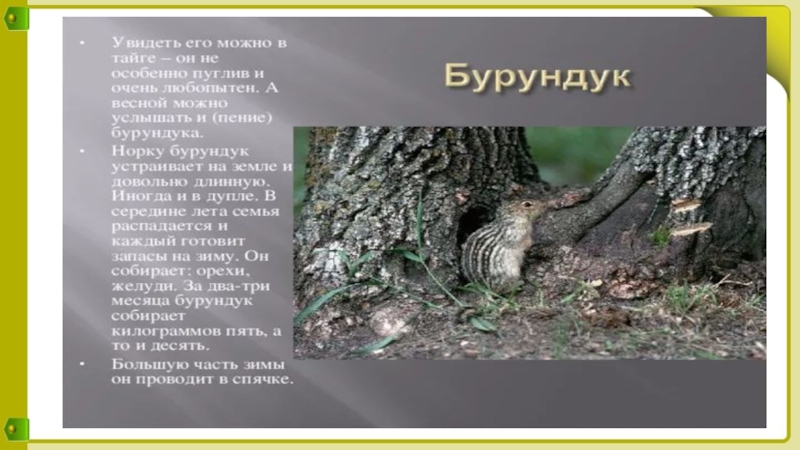 Презентация, доклад к уроку по литературе Восточной Сибири Рассказ С.Устинова Любопытный бурундук, 5 класс