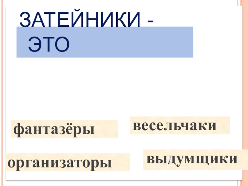 ЗАТЕЙНИКИ - ЭТОорганизаторы       весельчаки       выдумщики