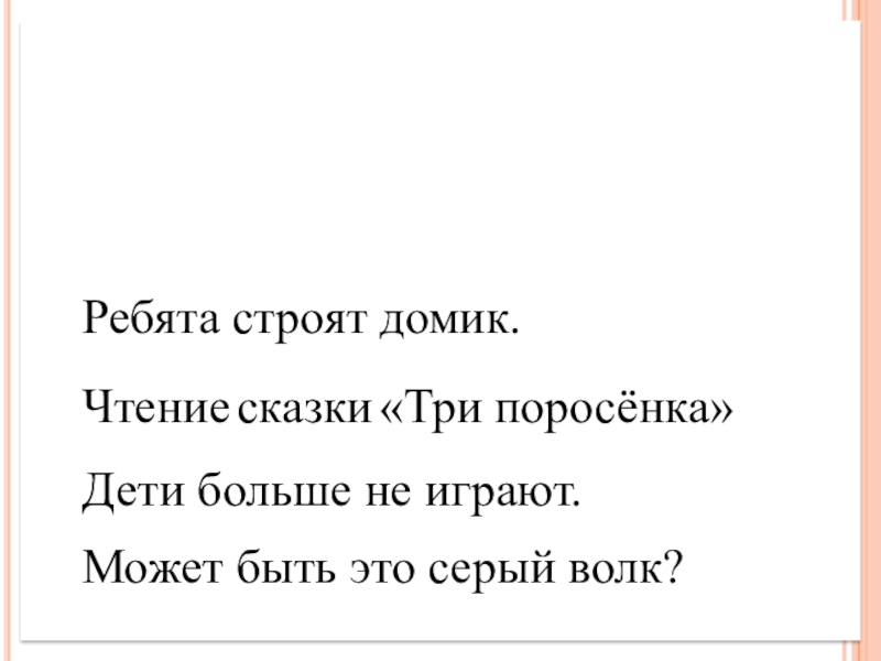 Ребята строят домик.Чтение сказки «Три поросёнка»Дети больше не играют.Может быть это серый волк?