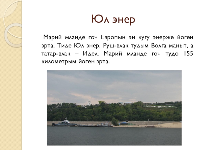 Юл энер	Марий мланде гоч Европын эн кугу энерже йоген эрта. Тиде Юл энер. Руш-влак тудым Волга маныт,
