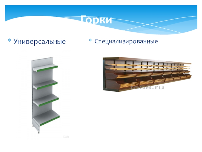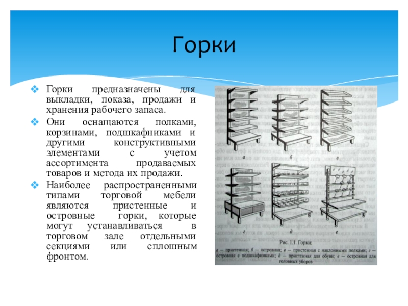 Горки предназначены для выкладки, показа, продажи и хранения рабочего запаса.