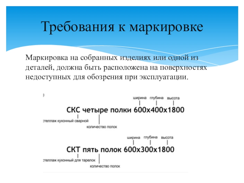 Слайд 42Маркировка на собранных изделиях или одной из деталей, должна быть расположена