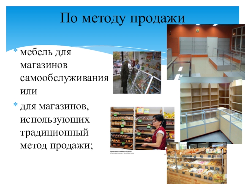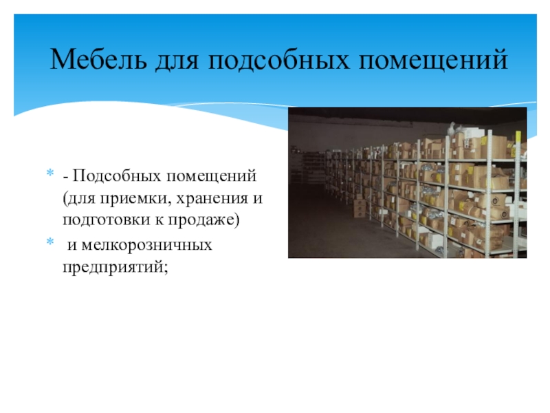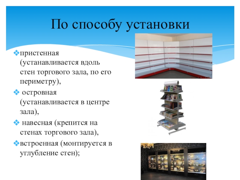 к продаже, выкладкой и продажей товаров, в магазинах применяется немеханическое торгово-технологическое оборудование (мебель для торговых помещений).