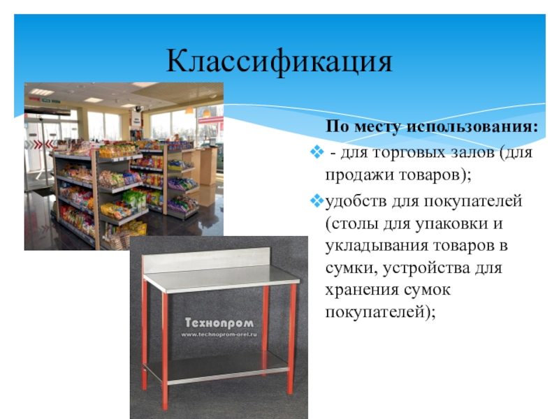 Тема : Классификация, назначение и требования, предъявляемые к торговой мебели