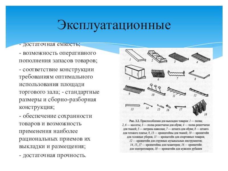 - обеспечение сохранности товаров и возможность применения наиболее рациональных приемов их выкладки и размещения;