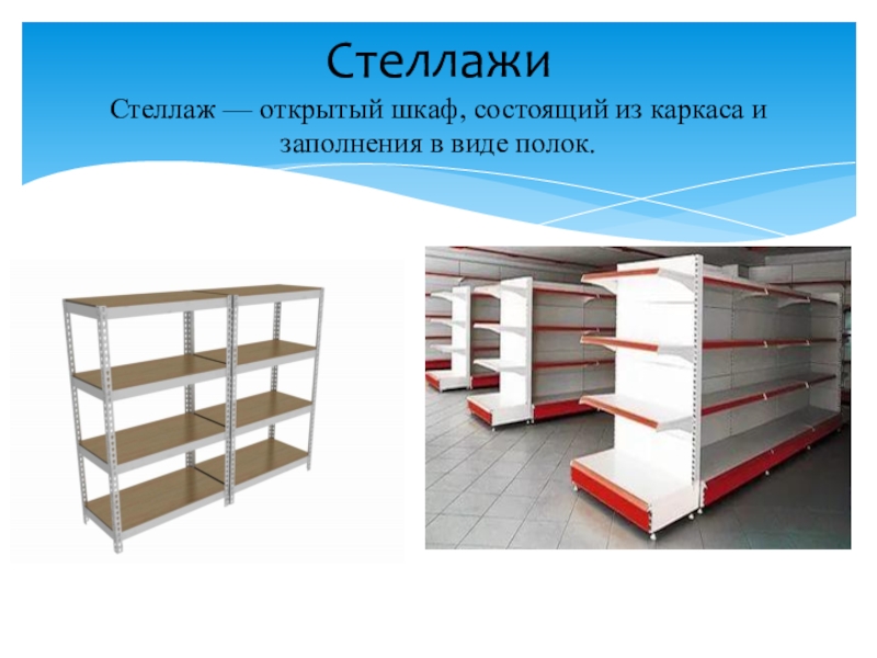 Стеллаж — открытый шкаф, состоящий из каркаса и заполнения в виде