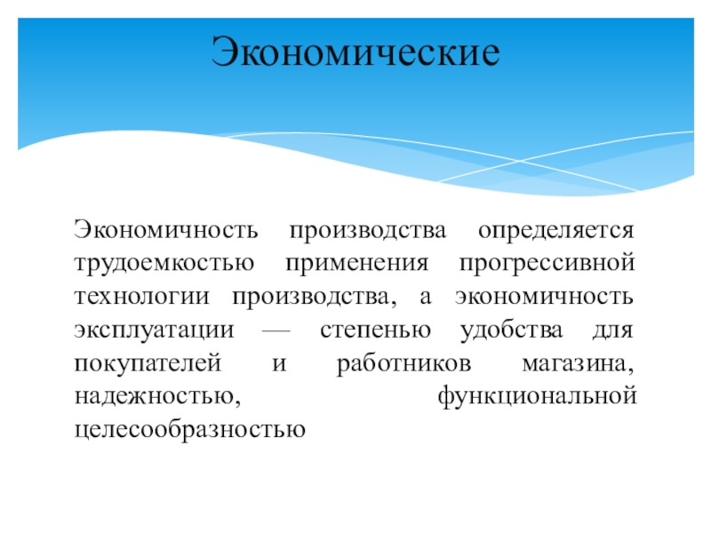 Слайд 50Экономичность производства определяется трудоемкостью применения прогрессивной технологии производства, а экономичность эксплуатации
