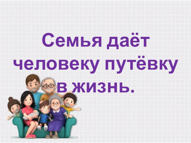 Слайд 7Семья даёт человеку путёвку в жизнь.