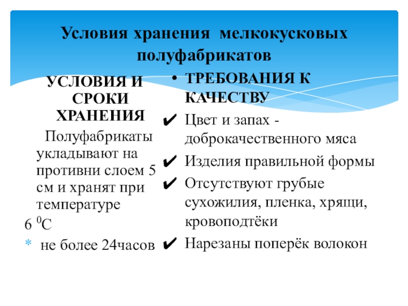 Условия хранения мелкокусковых полуфабрикатов
