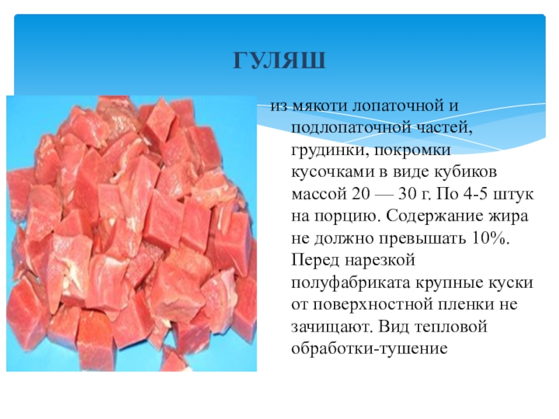Отсутствуют грубые сухожилия, пленка, хрящи, кровоподтёки
