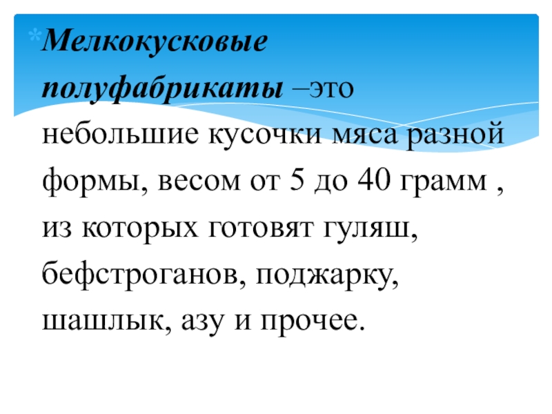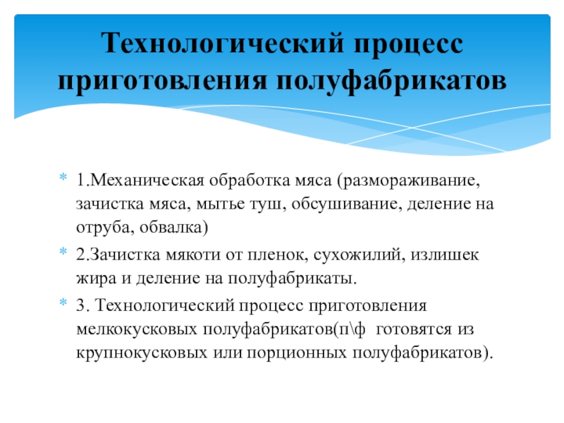 Технологический процесс приготовления полуфабрикатов