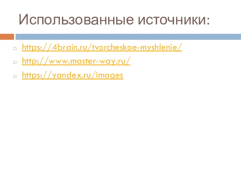 Использованные источники:https://4brain.ru/tvorcheskoe-myshlenie/http://www.master-way.ru/https://yandex.ru/images