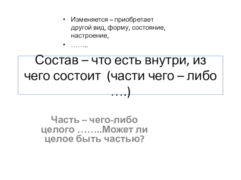 Часть – чего-либо целого ……..Может ли целое быть частью?