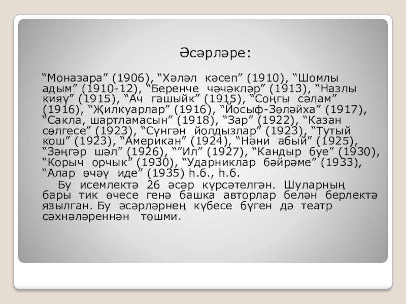 “Моназара” (1906), “Хәләл кәсеп” (1910), “Шомлы адым”