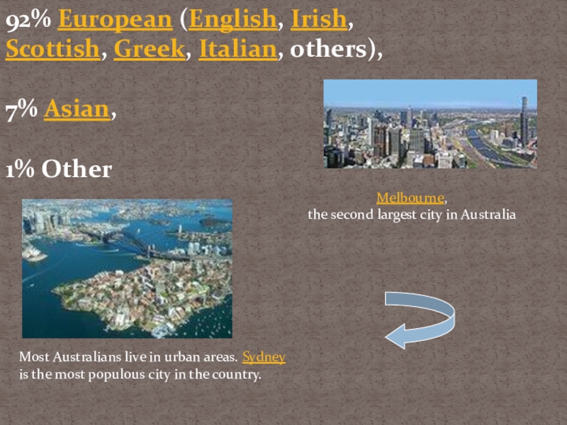Most Australians live in urban areas. Sydney is the most populous city in the country.