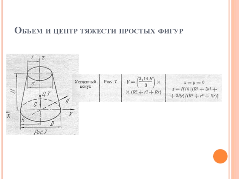 конуса и определяем объем каждого. Для этого в табл. 1 находим формулу объема усеченного конуса