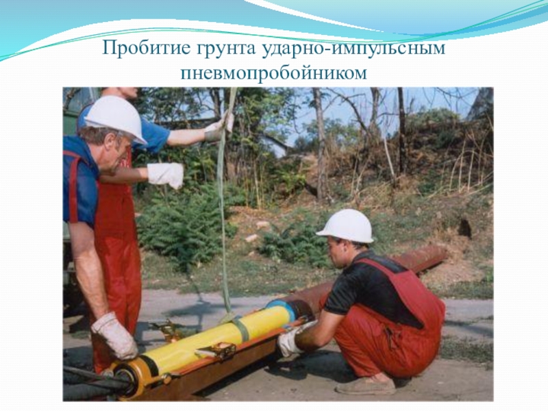 Слайд 15Пробитие грунта ударно-импульсным пневмопробойником