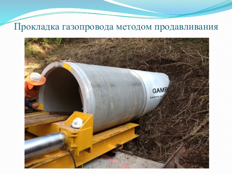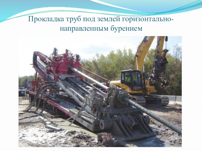 Слайд 14Прокладка труб под землей горизонтально-направленным бурением