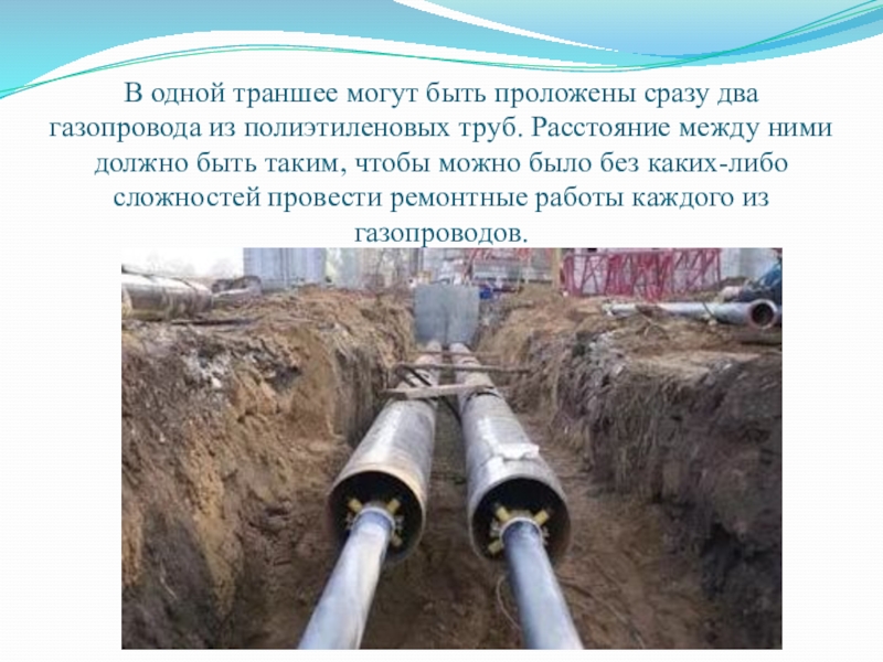 Слайд 9В одной траншее могут быть проложены сразу два газопровода из полиэтиленовых