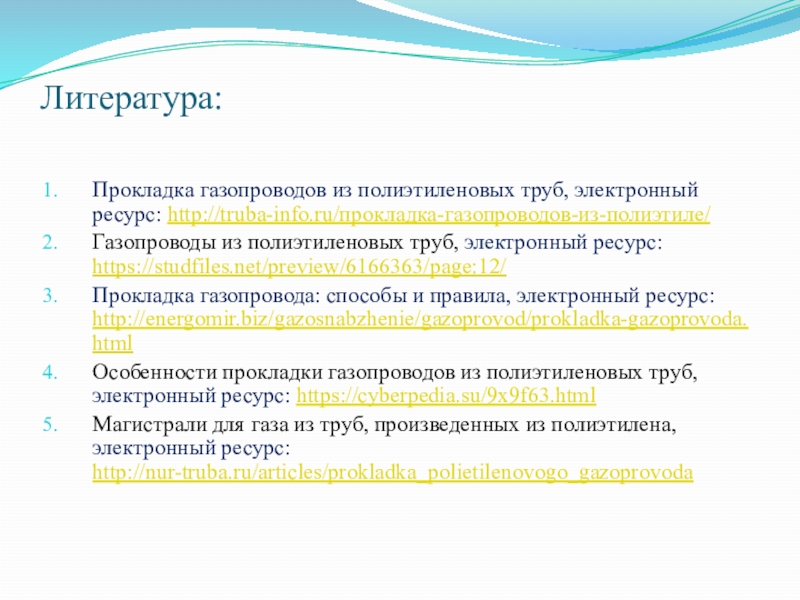Прокладка газопроводов из полиэтиленовых труб, электронный ресурс: http://truba-info.ru/прокладка-газопроводов-из-полиэтиле/