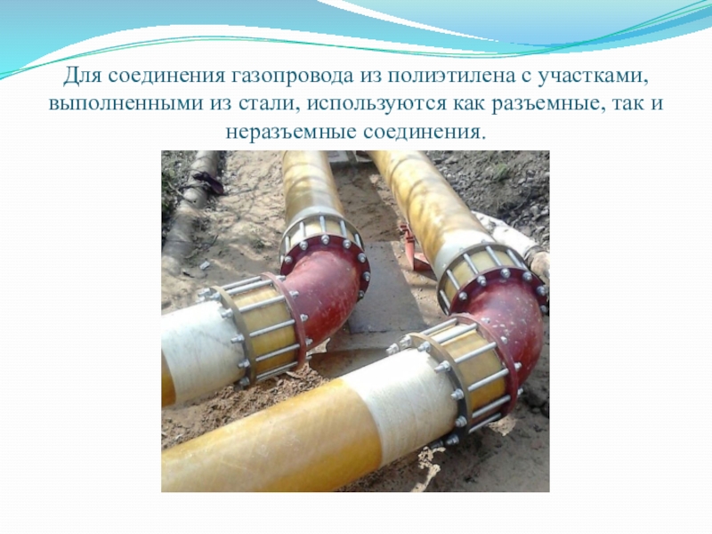 Слайд 11Для соединения газопровода из полиэтилена с участками, выполненными из стали, используются
