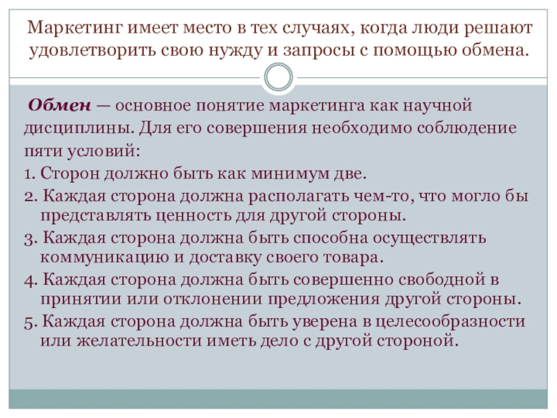 Обмен — основное понятие маркетинга как научной
