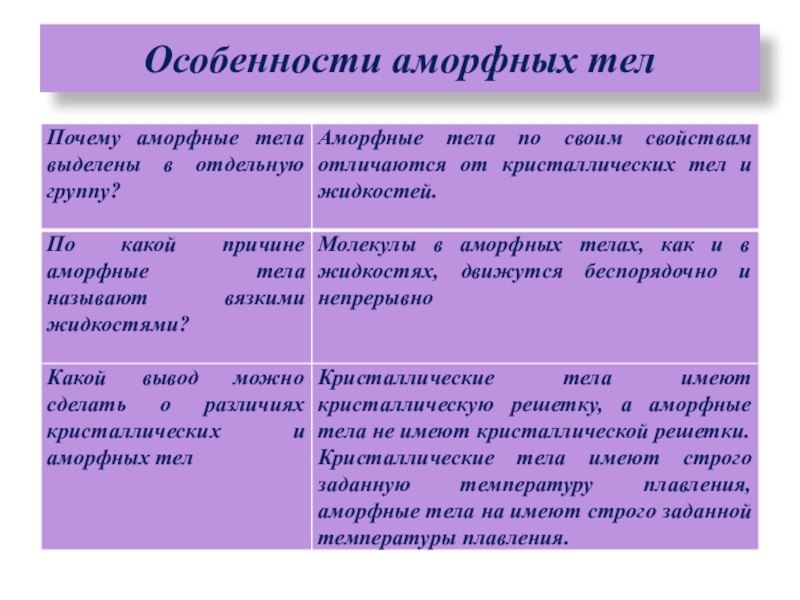 Сравнение атомарной решетки кристаллов и аморфных тел